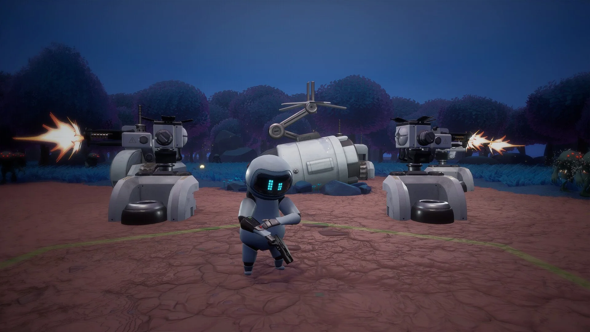 I modeled, rigged, and animated the player character. I also did the base colors before handing him off to Bryan Walter to animate his pixel eyes and Lucas Zilke for materials.